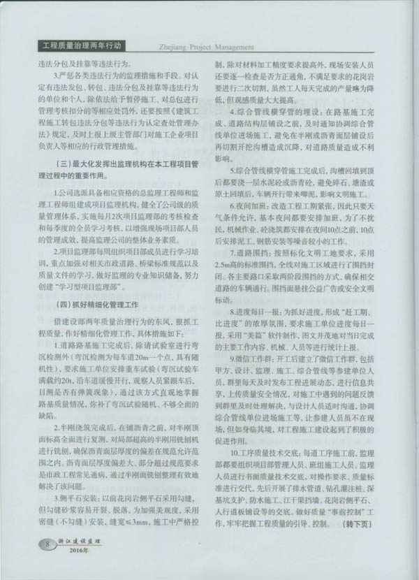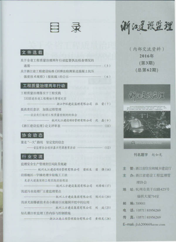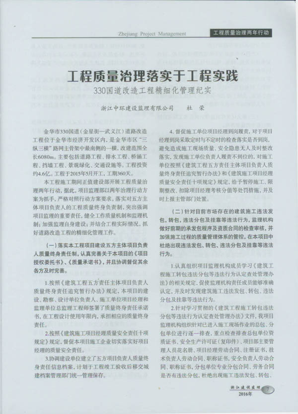 祝贺杜荣《工程质量治理落实于工程实践——330国道改造工程精细化管理纪实》一文发表于《浙江建设监理》