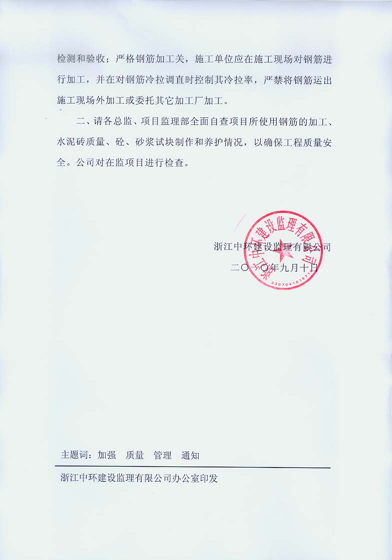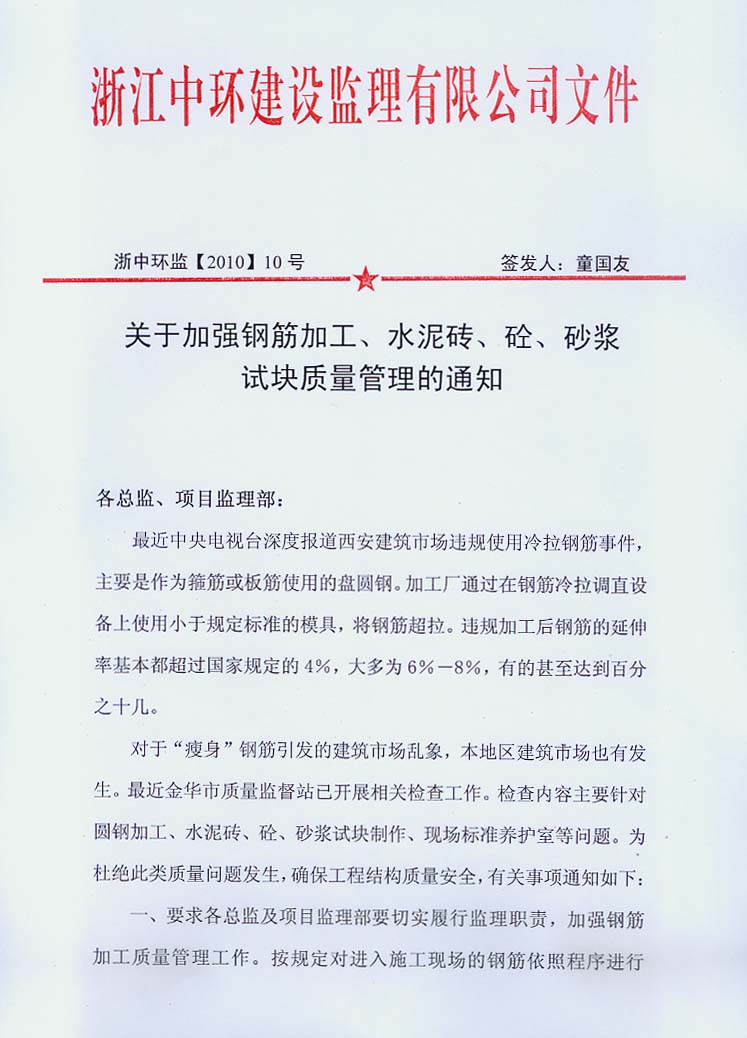 关于加强钢筋加工、水泥砖、砼、砂浆试块质量管理的通知