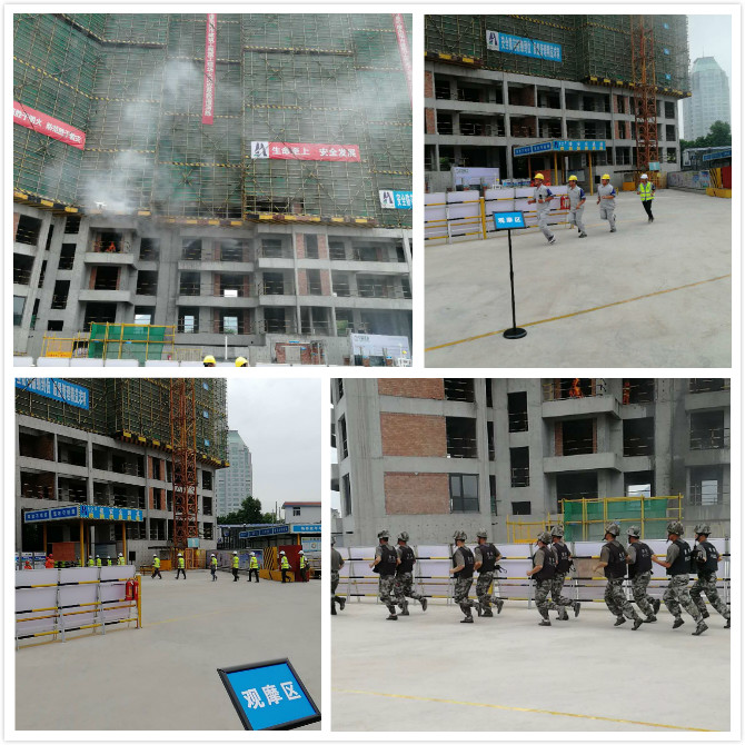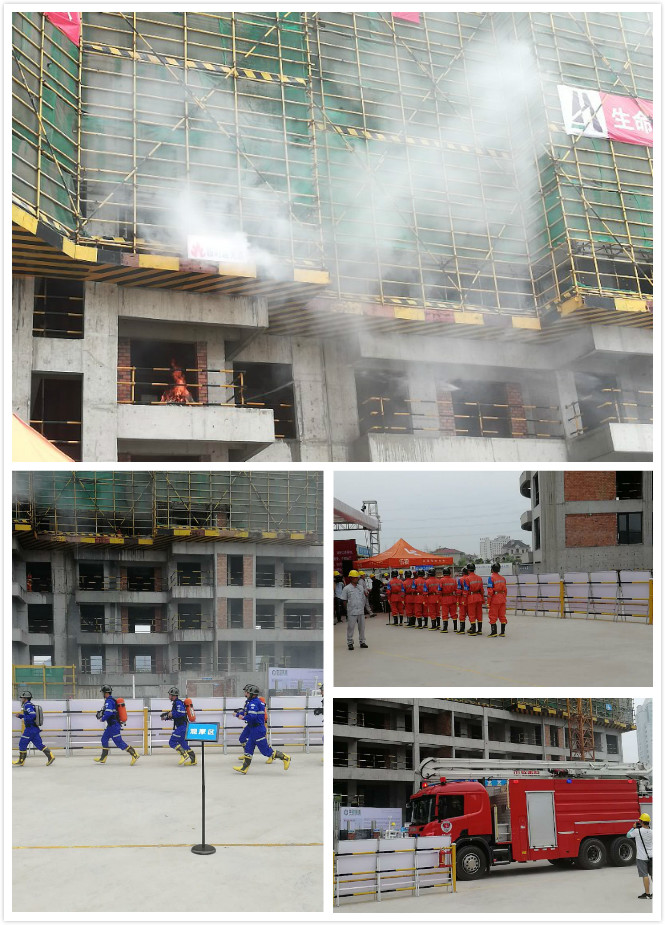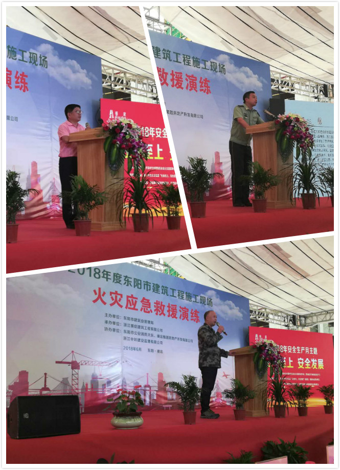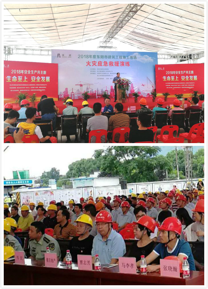 为提高建筑从业人员消防安全意识,规范作业行为,提升消防应急救援能力,按照2018年“安全生产月”工作部署,于6月12日下午2点在我司监理的东阳横店南江壹号三期项目施工现场举行了一场精彩的消防应急演练观摩会。东阳市建管局葛德中局长和建管局、安监局、公安消防大队、横店镇政府、横店集团分管领导以及市建筑施工企业负责人、项目经理、项目总监等共计450余人参加观摩,我司工程部项目负责人亦受邀参加!