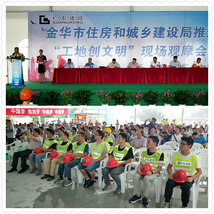 2018年9月7日上午,金华市住建局推进“工地创文明”现场观摩会在我公司监理的美地·金宸府项目部隆重召开!市建设住建局、质安总站有关领导;市区房屋建筑施工企业负责人、项目经理;监理单位负责人、项目总监以及房开企业主等出席了本次观摩会。