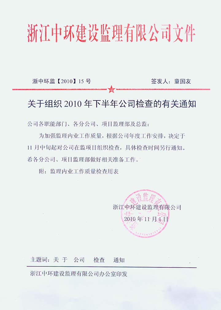 关于组织2010年下半年公司检查的有关通知