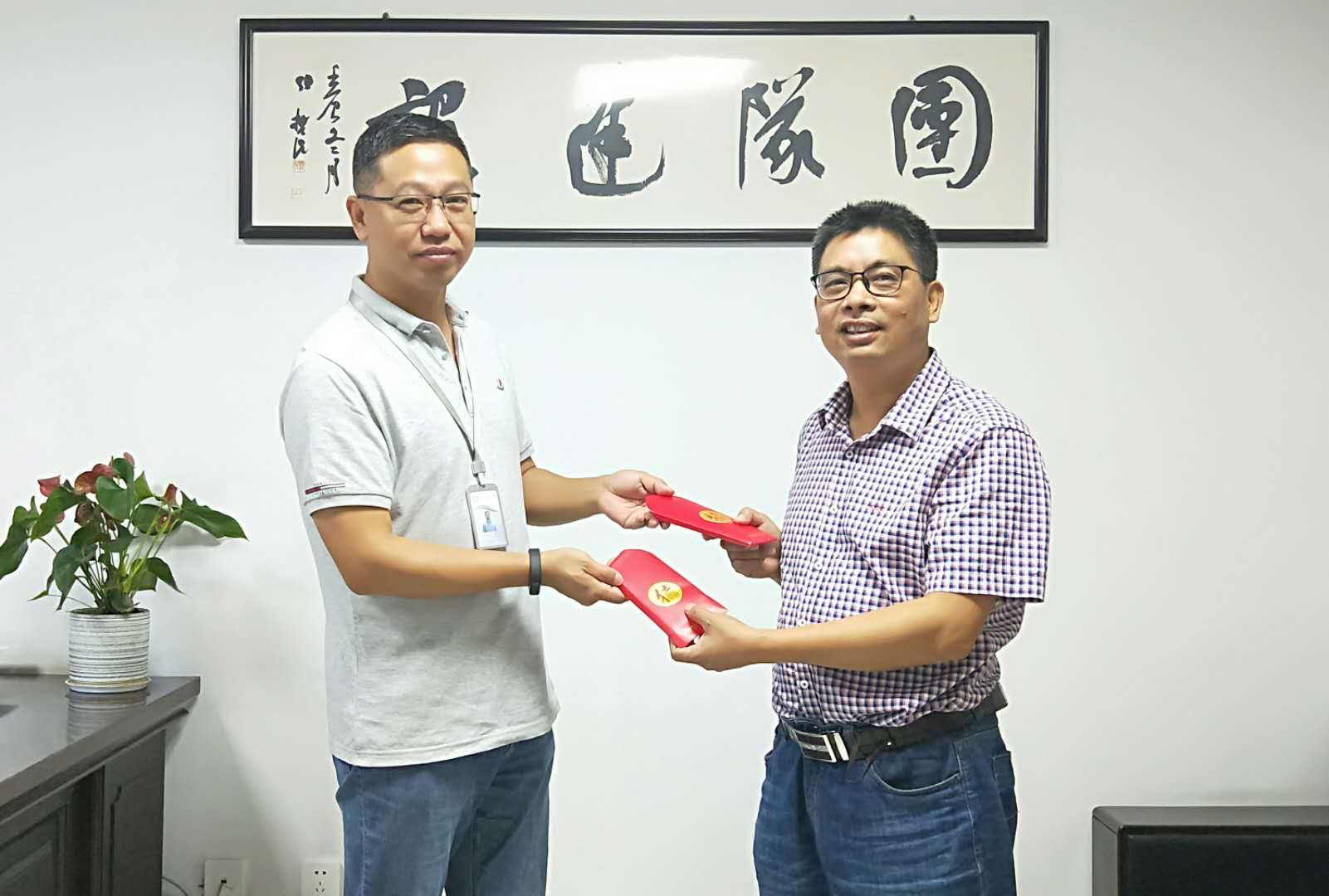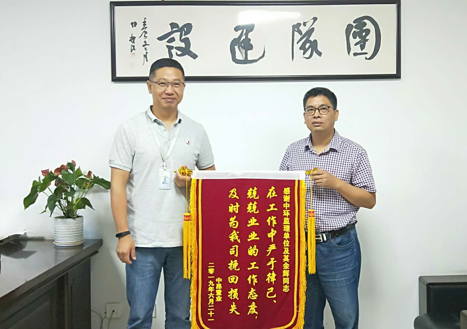 6月25日上午,金华市中昂置业有限公司副总经理华军一行带着锦旗和奖励金专程前来公司致谢。公司总经理张晓宏代表公司受谢。