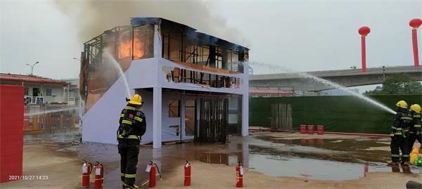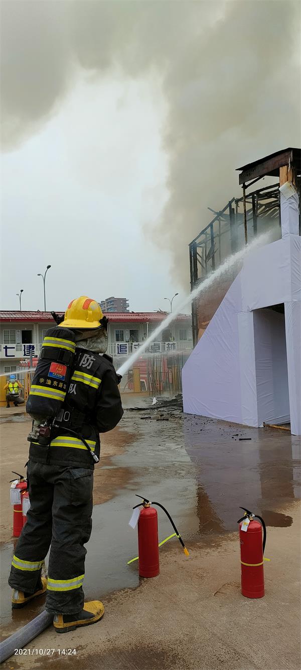 (二)第二阶段:区住建局分管领导李胜组织现场消防演练;参建单位交流发言;区住建局局长余卫群通报前期工地检查情况及部署下一步工作。
