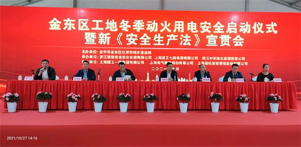 2021年10月27日下午13:45,金东区工地冬季动火用电安全启动仪式暨新《安全生产法》宣贯会在由我中环监理的紫金湾东方广场商业综合体项目隆重举行。