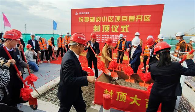项目自开工以来,在市轨道交通集团领导的高度重视下,各参建单位的全力以赴、共同努力,克服重重困难,高效率、高标准完成了首开区主体结构结顶。今天首开区的顺利结顶,标志着悦享湖韵小区项目建设进入了主体建筑决胜阶段。