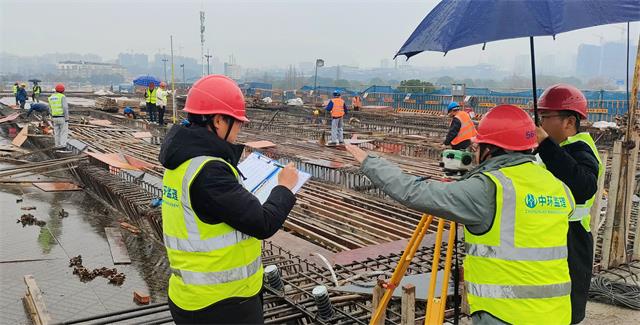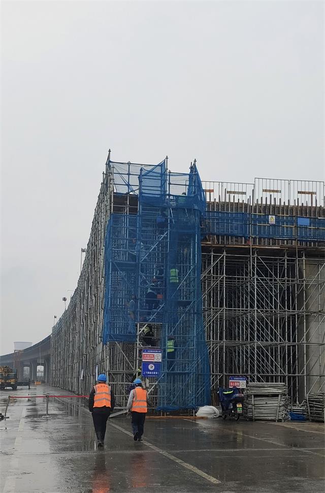 在项目施工现场可以看到,工人们有的正在搭设模板,有忙着绑扎钢筋,为下一步浇筑梁板做准备。虽然是寒风凛冽的冬日,工人们干得热火朝天,摆出了“开年就开跑”架势。