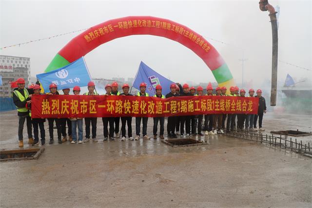 上午9时30时,随着最后一联箱梁合龙段混凝土的浇筑完成,标志着市区一环路快速化改造工程(一期)1标主线高架桥顺利合龙。