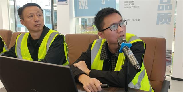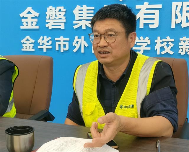 公司驻金华市外国语学校项目监理部总监朱天骄,就本项目学习贯彻落实金华市住房和城乡建设局《关于加强施工现场质量安全监管工作的通知》情况作了介绍,特别是对本项目在落实“四必查”要求的具体做法和成功经验作了分享。