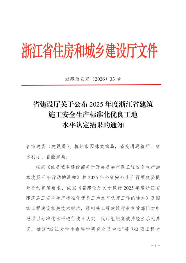 “浙江省建筑施工安全生产标准化管理优良工地”是我省建筑施工领域安全生产、文明施工方面的权威荣誉,集中体现了项目安全管理水平与现场文明施工成效,是衡量工程安全管理与建设品质的重要标杆。